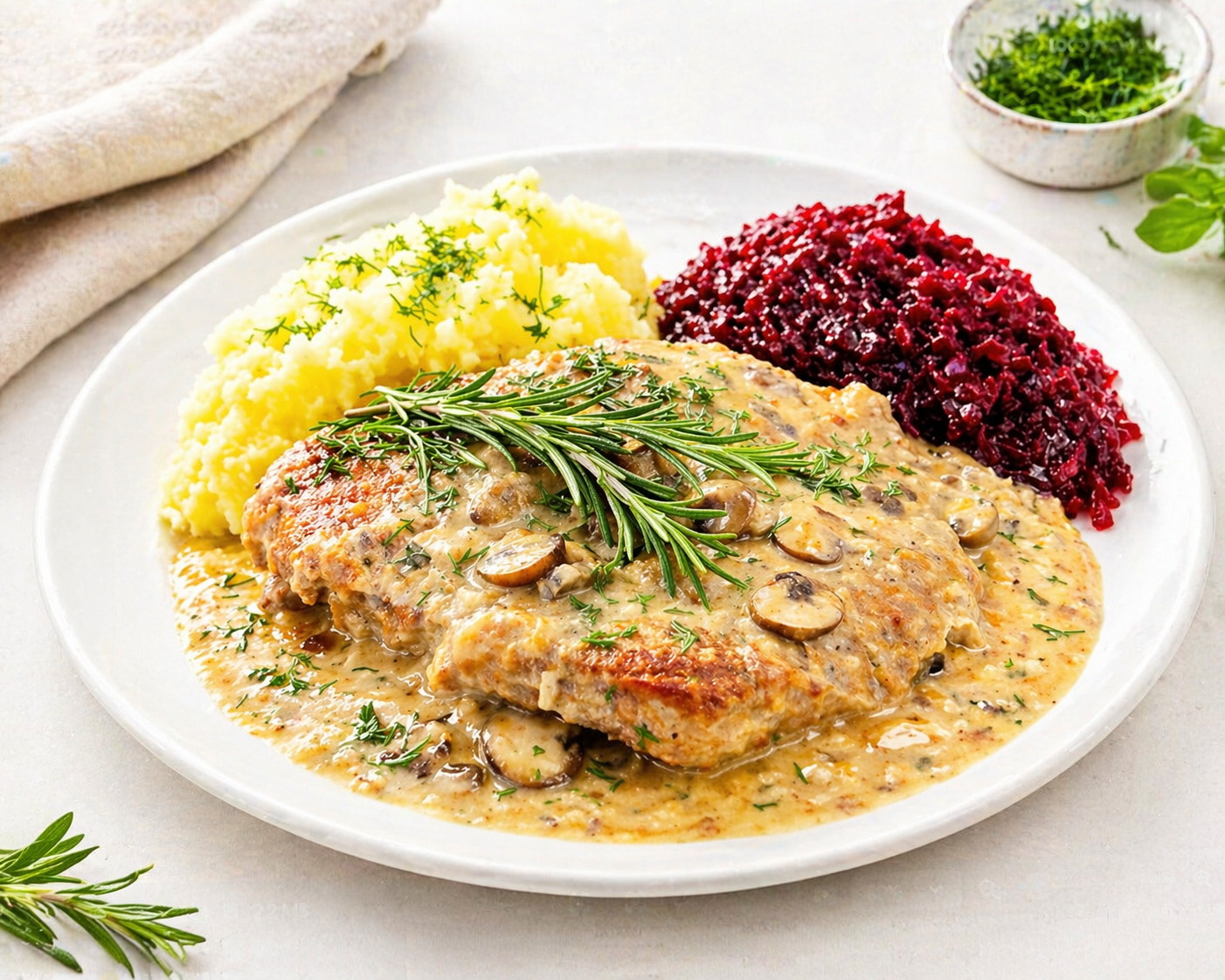 Soczysty schab w delikatnym, kremowym sosie, który podkreśla jego naturalny smak i aromat. Klasyczne, domowe danie przygotowane z dbałością o każdy detal – idealne na sycący i komfortowy posiłek.