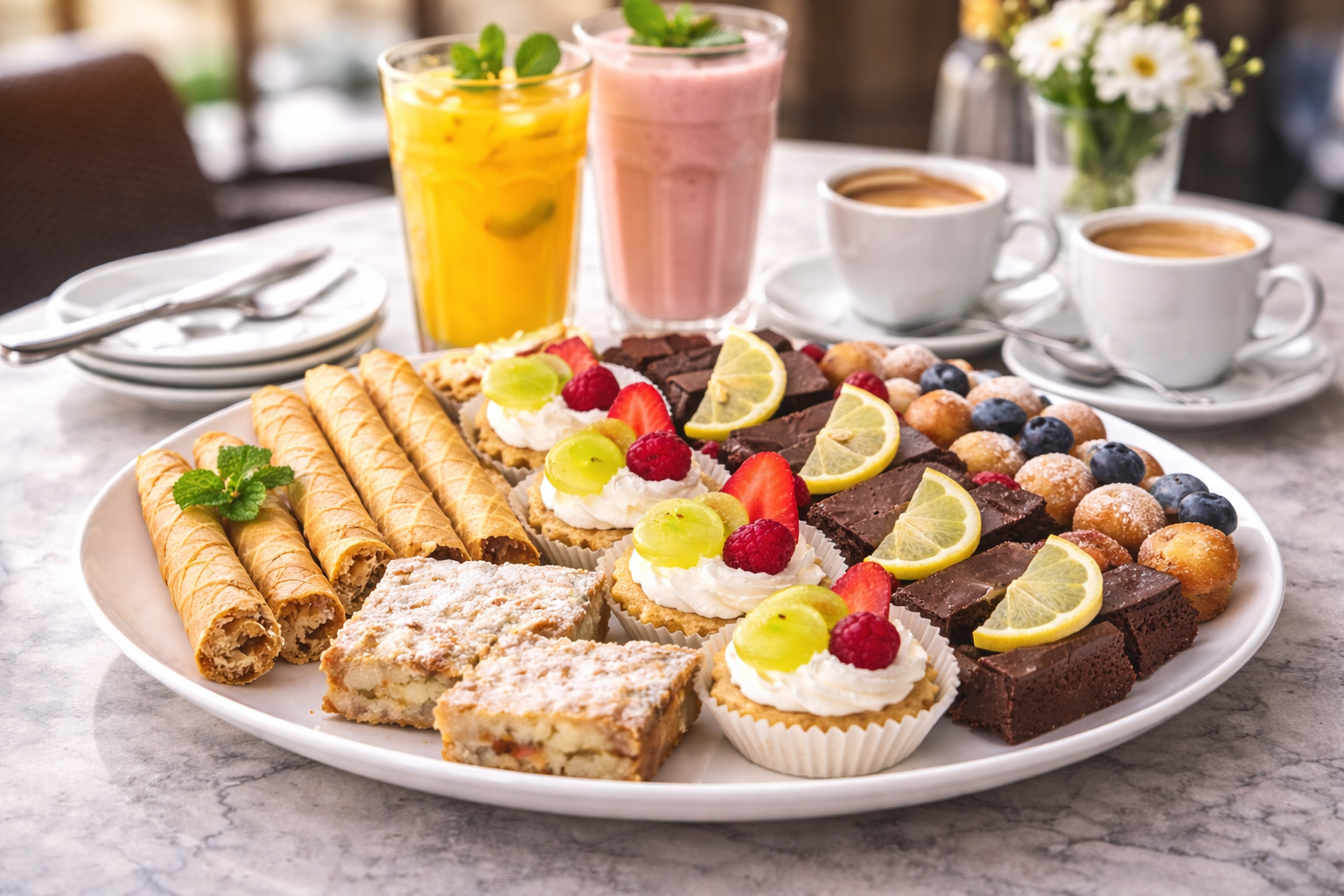 Uzupełnij catering o napoje i słodki stół, który robi wrażenie.
